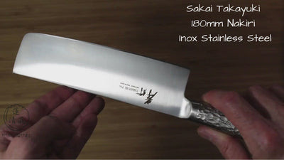 Sakai Takayuki Japanese Knife Set INOX Pro Molybdenum Stainless Steel Petty Knife 120 mm (4.7") Santoku Knife 180 mm (7.1") Nakiri Knife 180 mm (7.1")