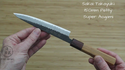 Sakai Takayuki Petty Knife 150mm (5.9") Aogami Super / Blue Super Kurouchi Hammered Finish