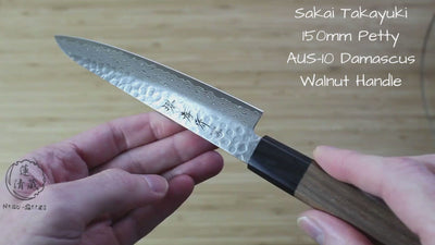 Sakai Takayuki Petty Utility Knife 150mm (5.9")Damascus 45 Layer with Walnut handle