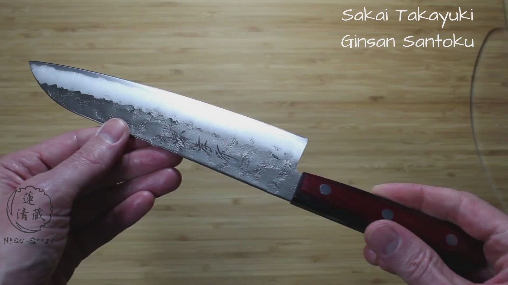 The Sakai Takayuki Ginsan Nashiji Japanese Santoku knife has a great depth and balance! Ginsan is a high carbon stainless steel, also known as Silver #3, that can be sharpened to a razor edge which it will retain very well.