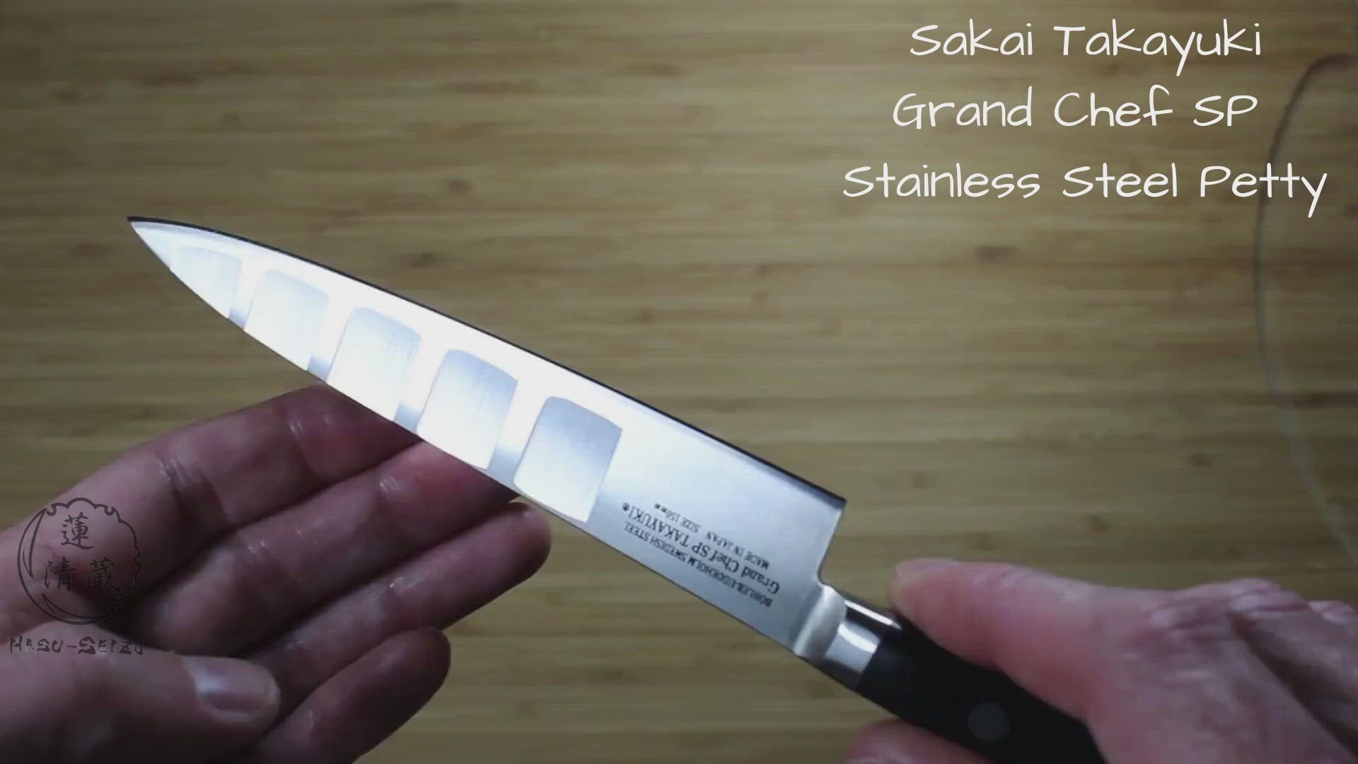 Sakai Takayuki Grand Chef series is a kitchen knife aiming at the first class of Western knife which brings out the characteristics of Bohler Uddeholm special steel to the maximum. The blade is subjected to a groove processing to reduce the resistance when cutting, and you can enjoy the sharpness you have never experienced before. Please do not cut bone or frozen food. It may cause the knife to chip or other damaged. No dishwasher please.