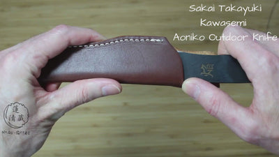 Sakai Takayuki Outdoor Knife 120 mm (4.7") Aoniko Blue Steel #2 with Saya & Leather Strap - Kawasemi