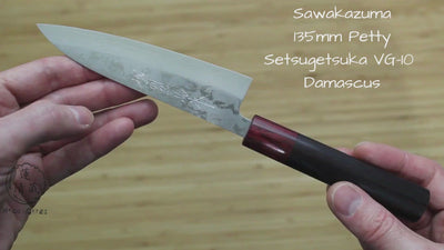 Sawakazuma Setsugetsuka VG-10 Damascus Petty Knife 135 mm / 5.3" Rosewood Handle